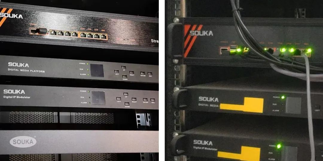 2、输出到2台8频点SKD1802 IPQAM调制器转DTMB高清数字同轴传输到每个终端电视机;