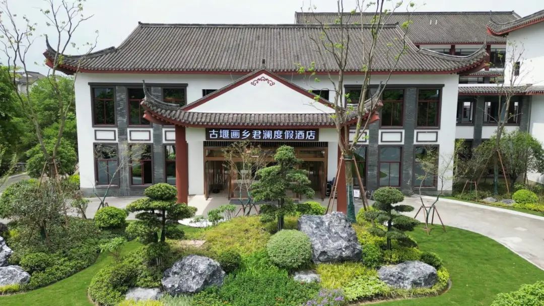 古堰画乡君澜大酒店项目总投资1亿元,按照四星以上的度假酒店标准,打造为“宋韵+油画艺术”相结合的文化主题星级酒店。