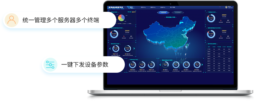云端能够统一管理多个服务器、多个终端,实现一键下发设备参数,远程批量升级设备等功能,极大地简化了操作,优化了管理流程。